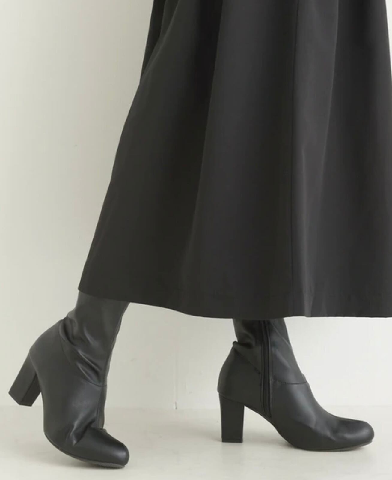 ほんのりハリ感のある生地で、フロントやバックにタックを施すことで女性らしくふんわりとした立体感のあるシルエットです。