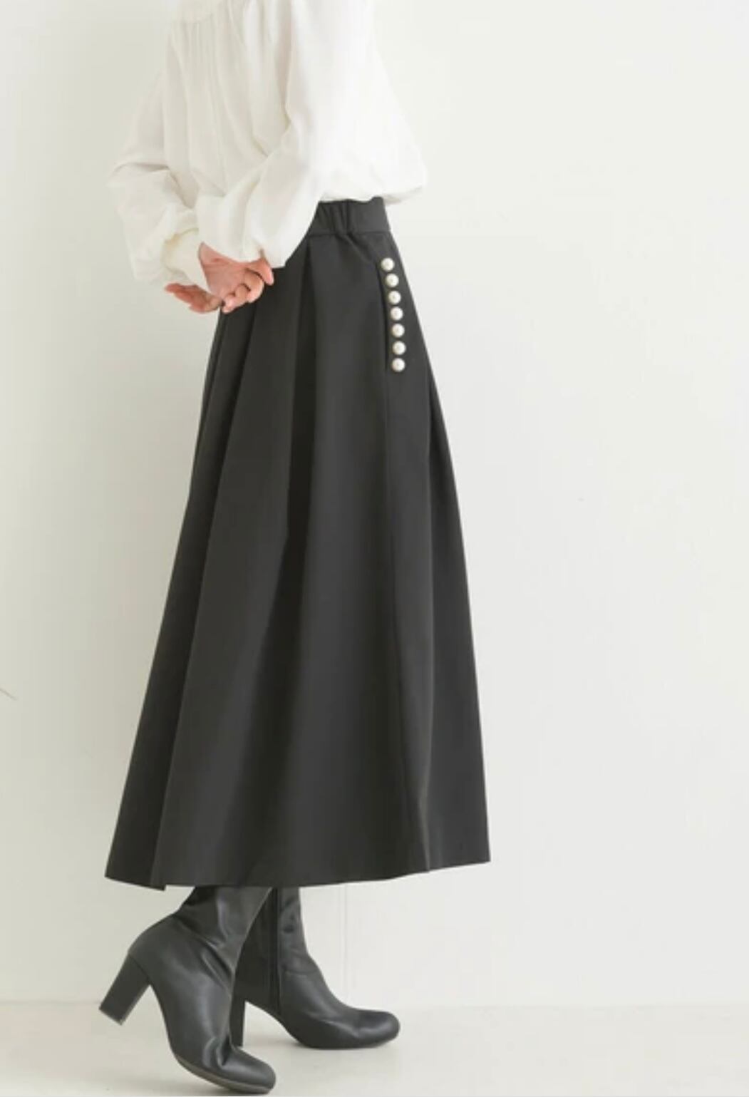 大きめのパールが華やかでアクセントのタックスカートが登場。