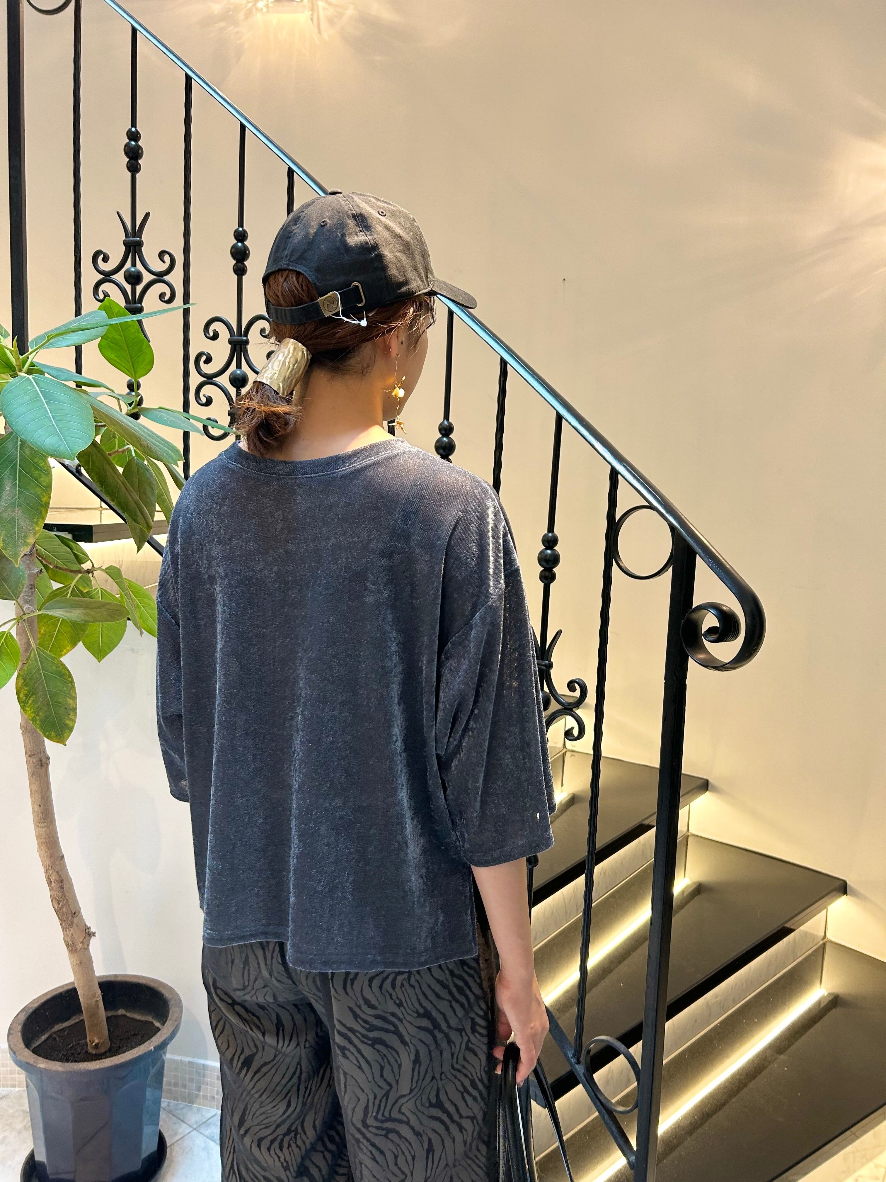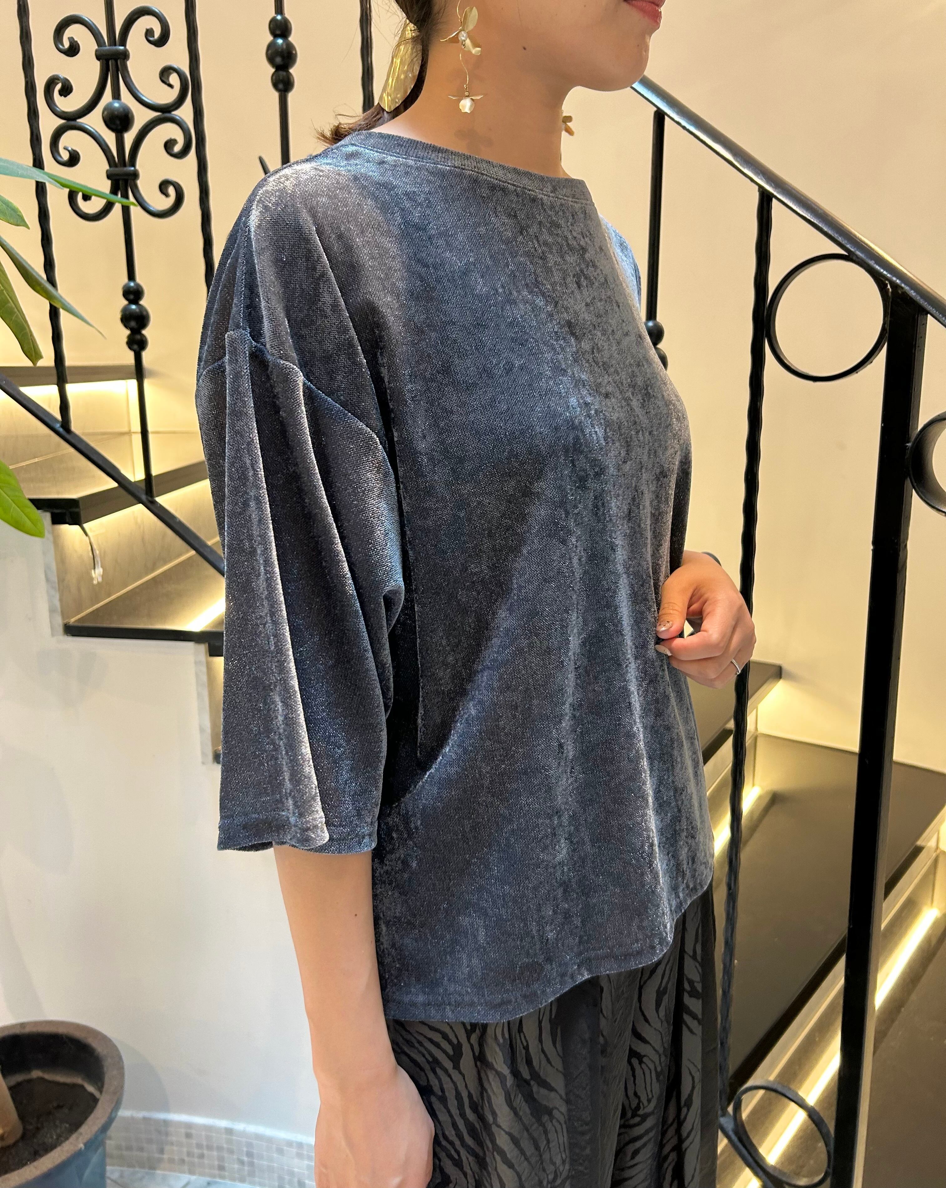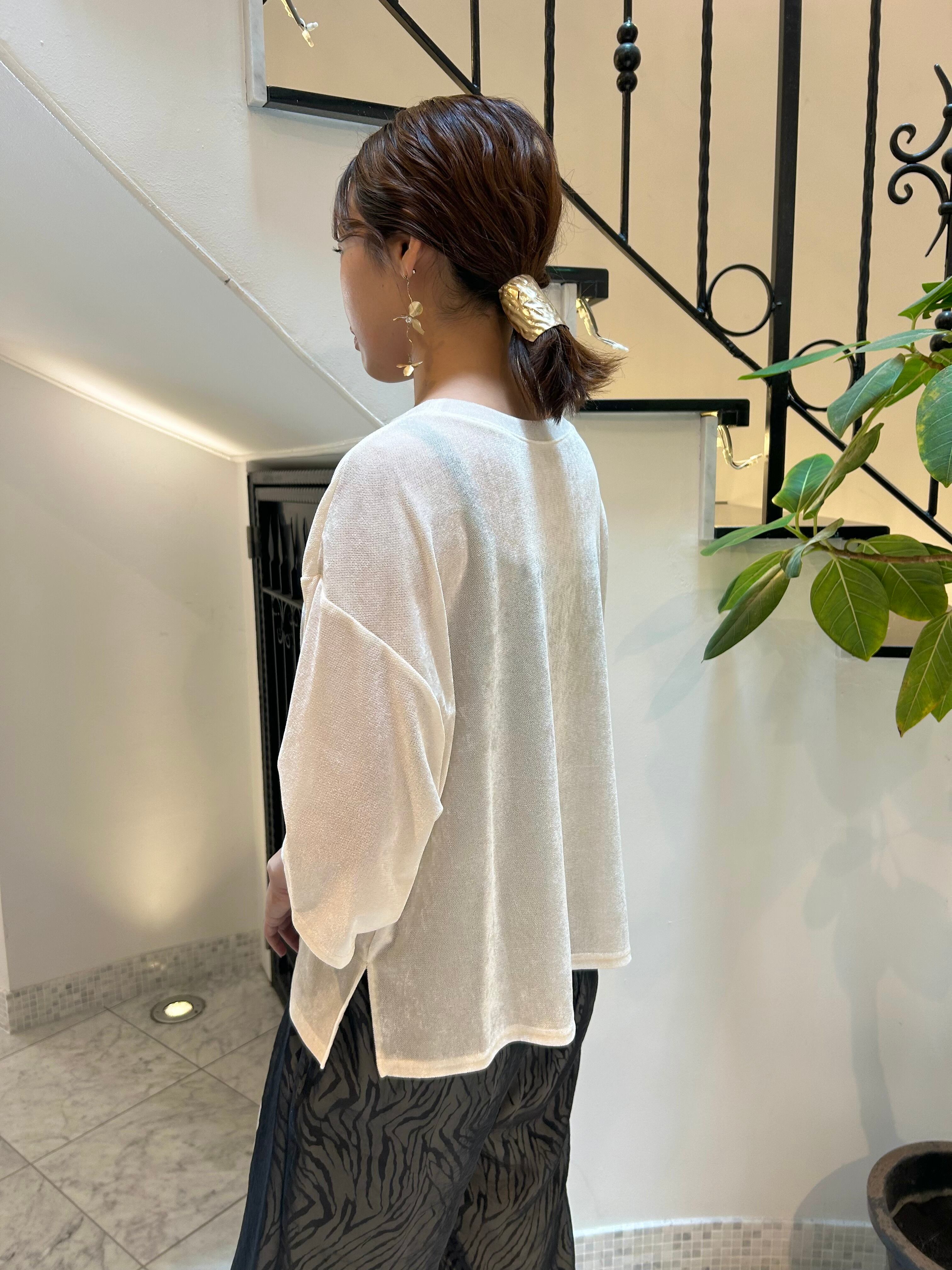 ベロアメッシュ素材のプルオーバーは、カットソーのシンプルなデザインです。