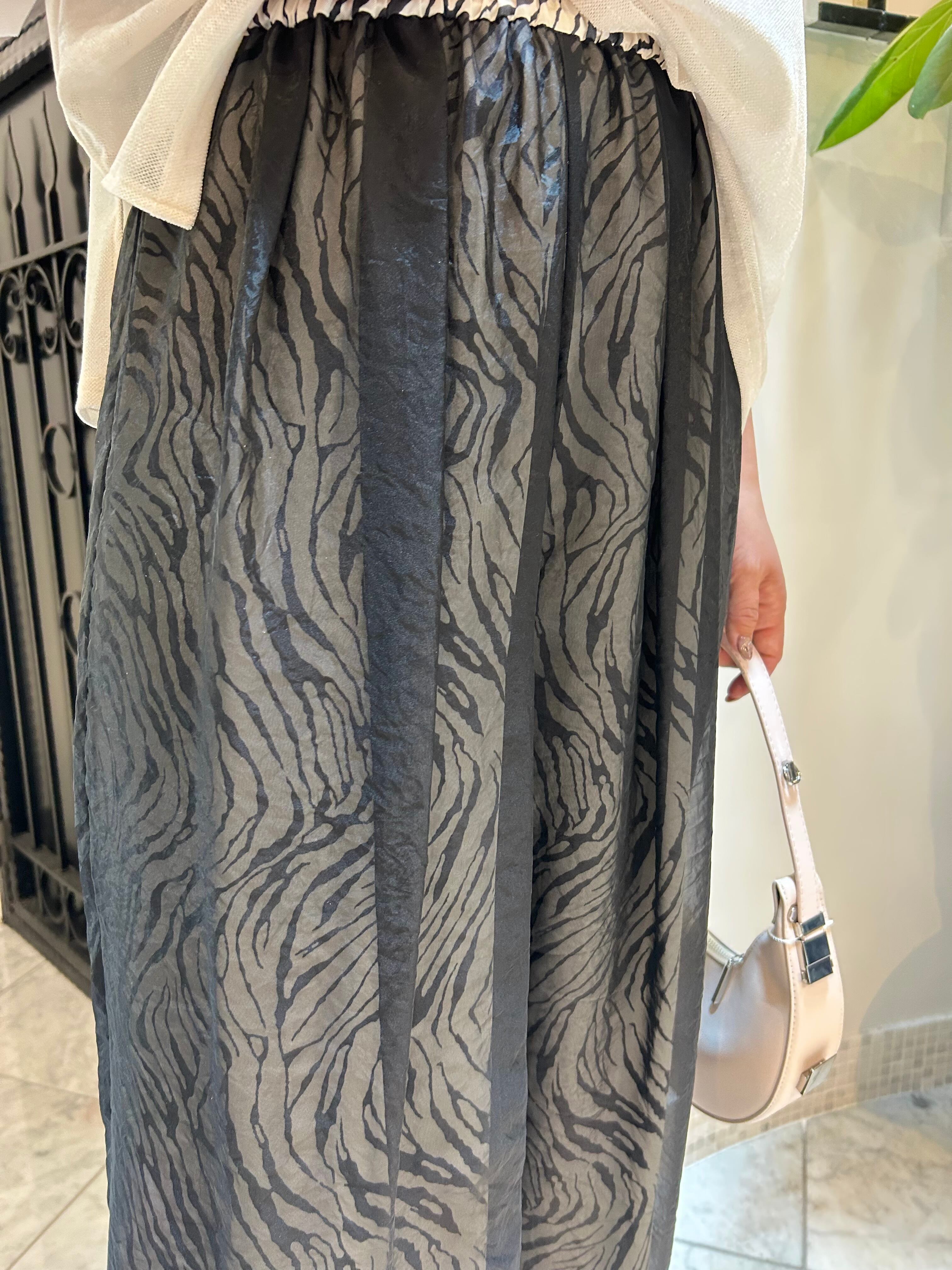 柄にシアーなオーガンジーを重ねることで、ゼブラ柄がより着こなしやすくなり、風合いの異なる素材のレイヤード感を楽しんで頂けます。