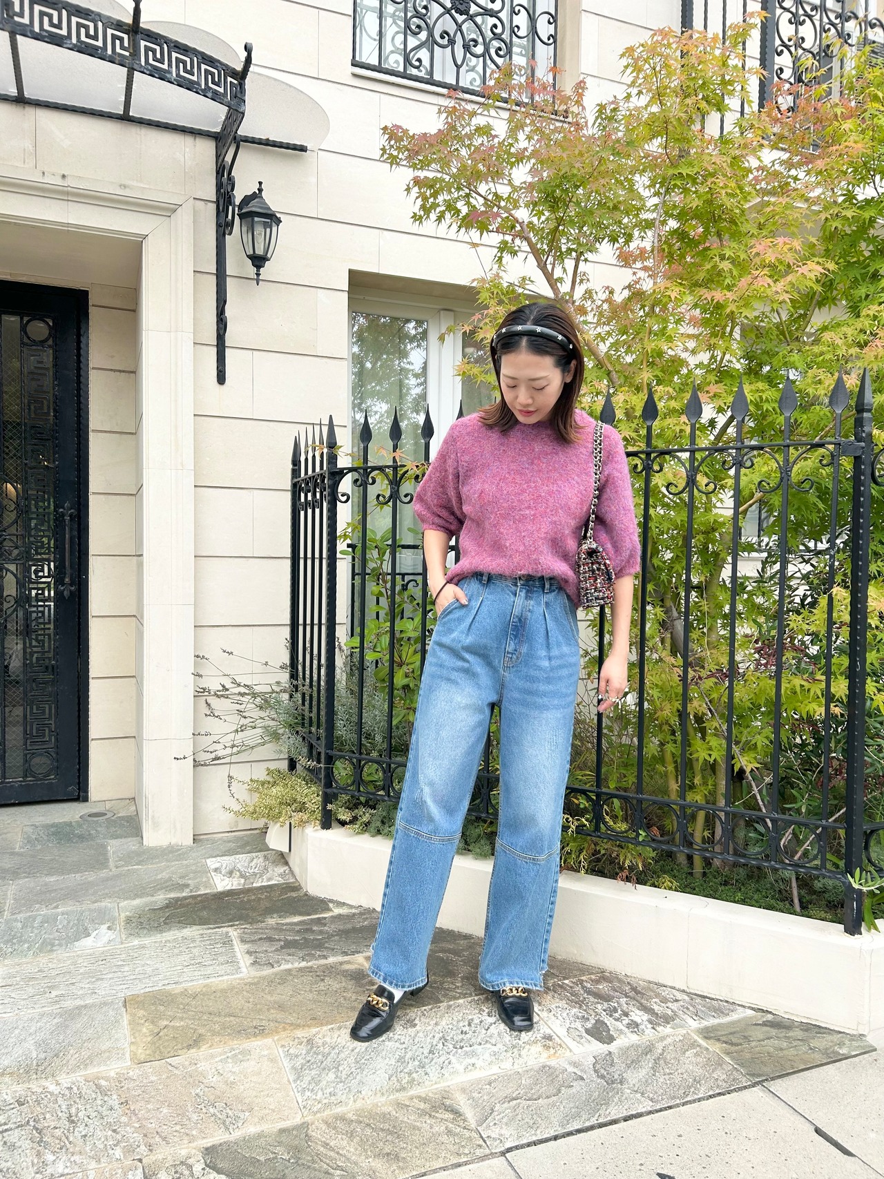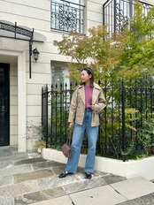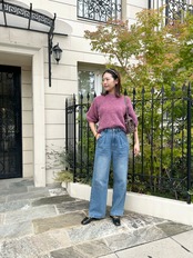フレアスカートやタイトなどの綺麗めコーデも合いますが、デニムパンツのカジュアルスタイルも◎。