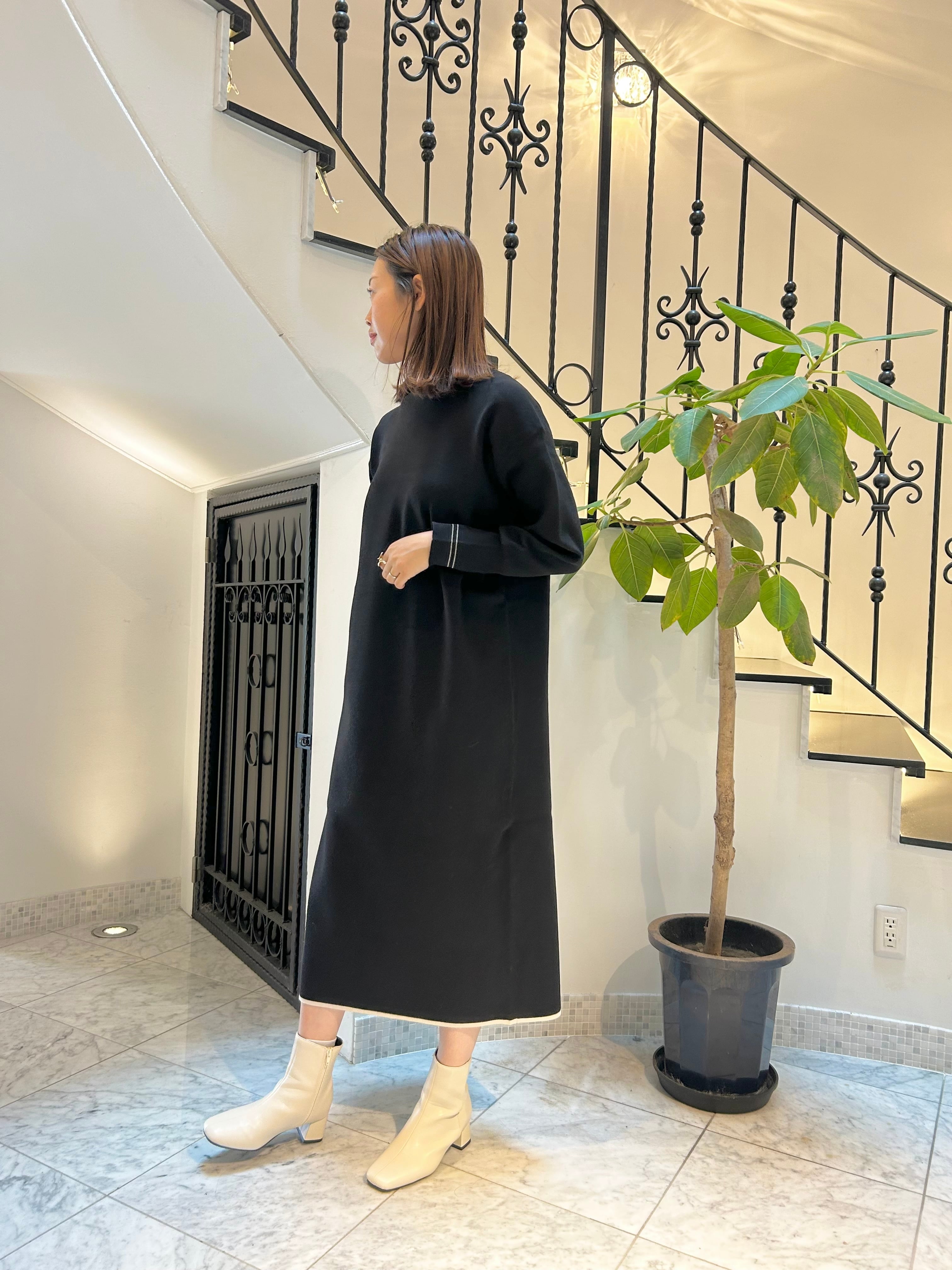スッキリとしたシルエットのやわもちヤーンニットワンピースです。