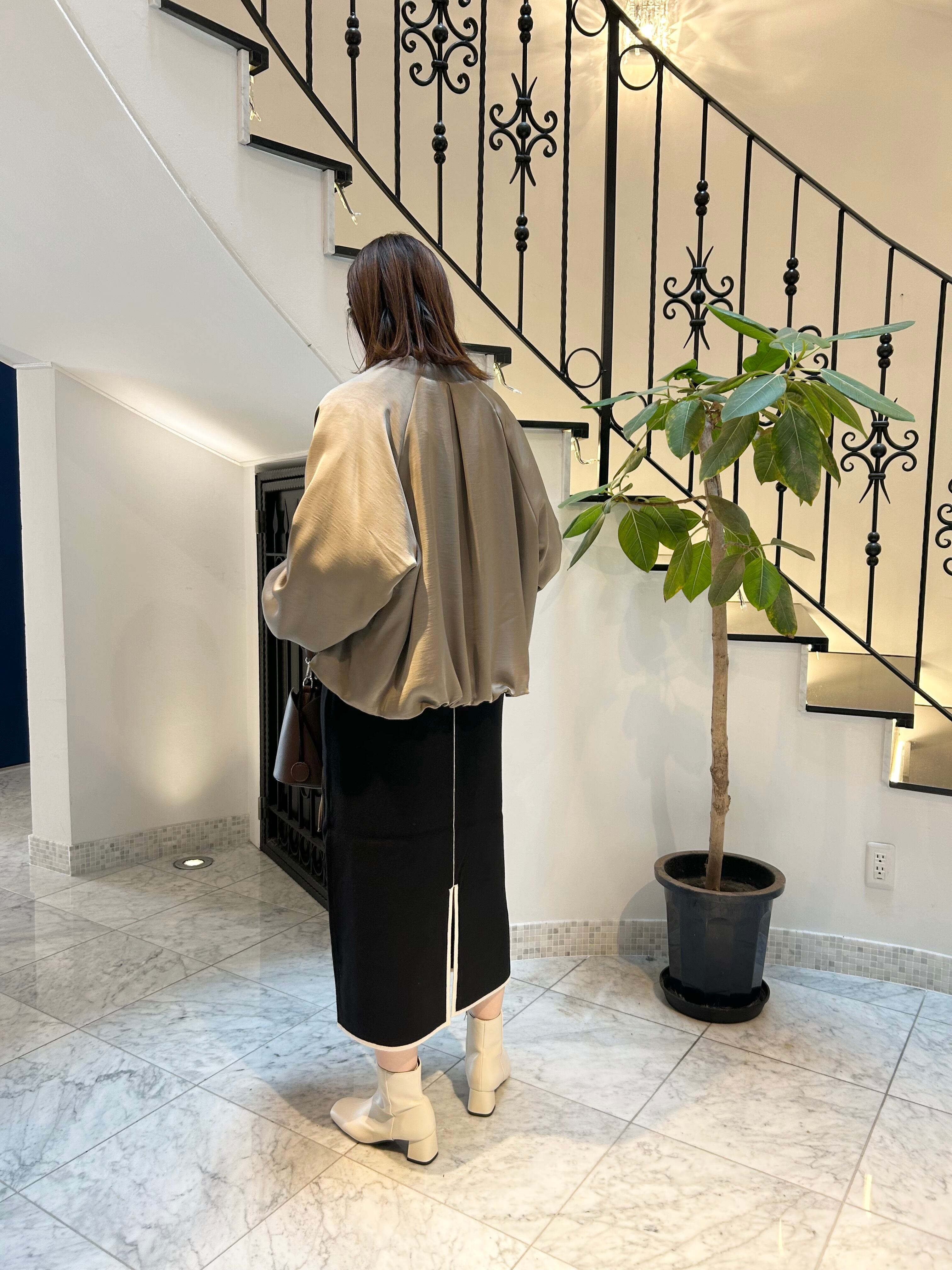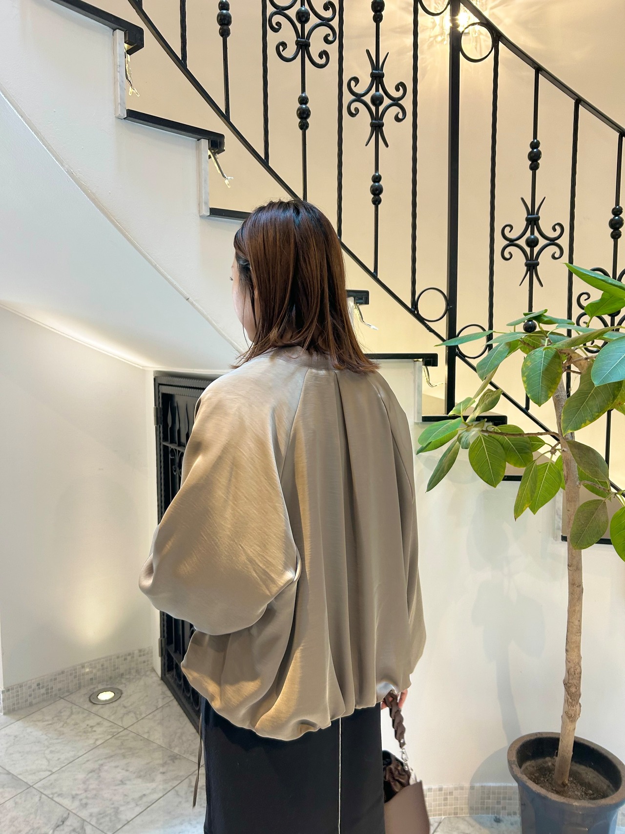 とろみ感と大人の光沢感のあるサテン素材を使用した、ボリュームショートブルゾンです。