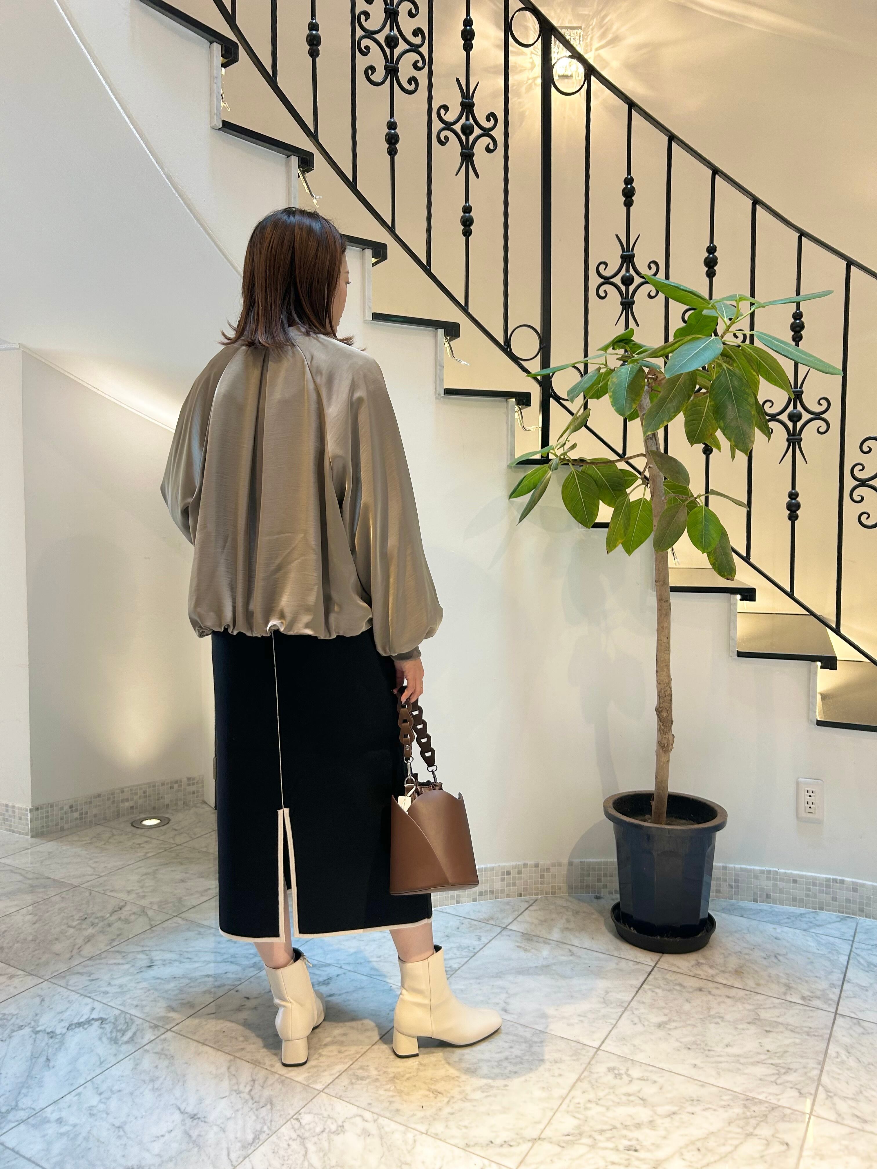 袖と裾はバルーンのようにフォルムを出した、女性らしいシルエットになっています。
