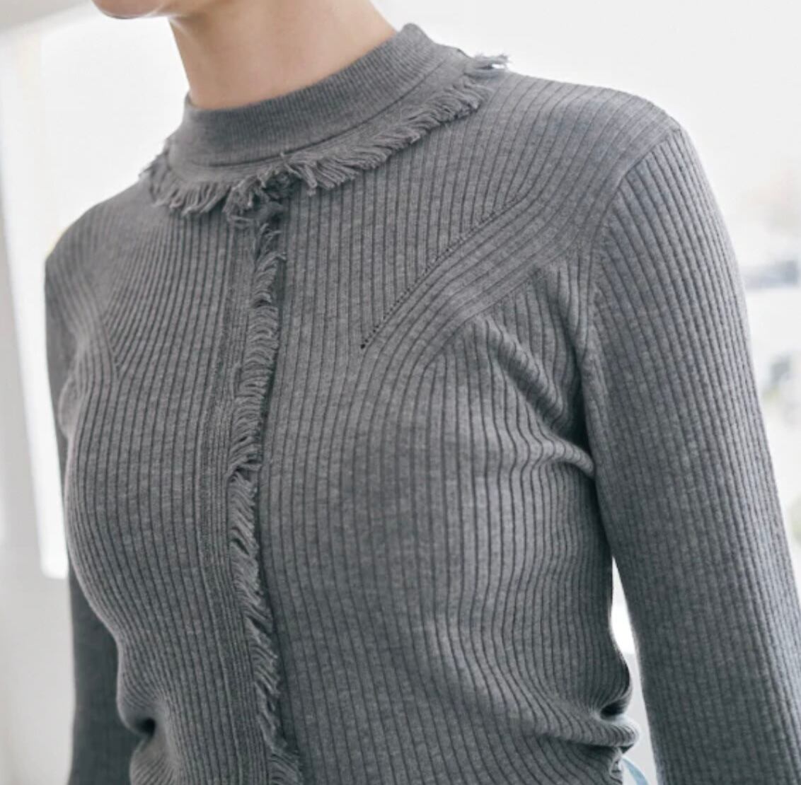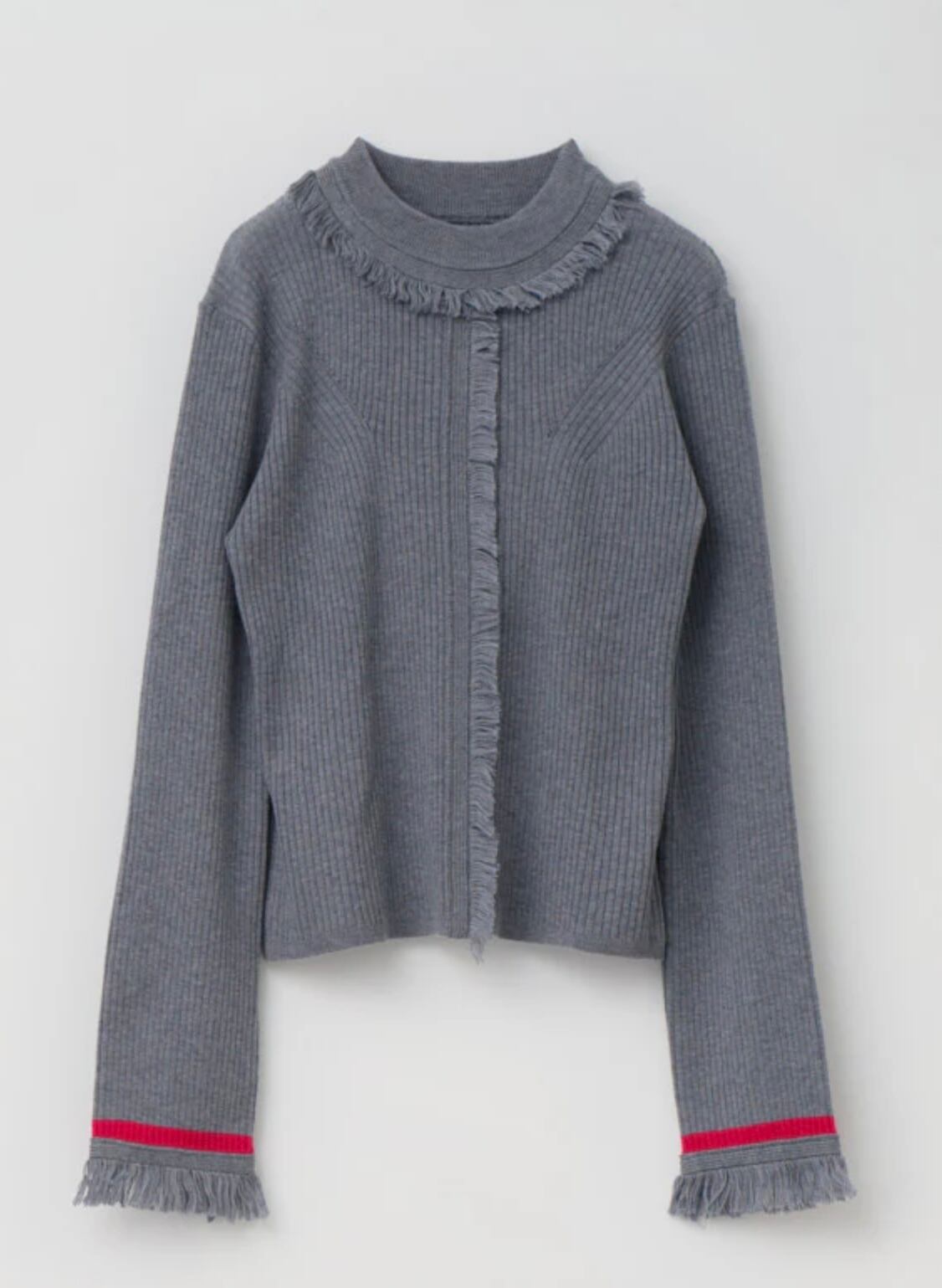 リブ編みをベースに、フリンジディテールを取り入れたデザインニットが入荷。