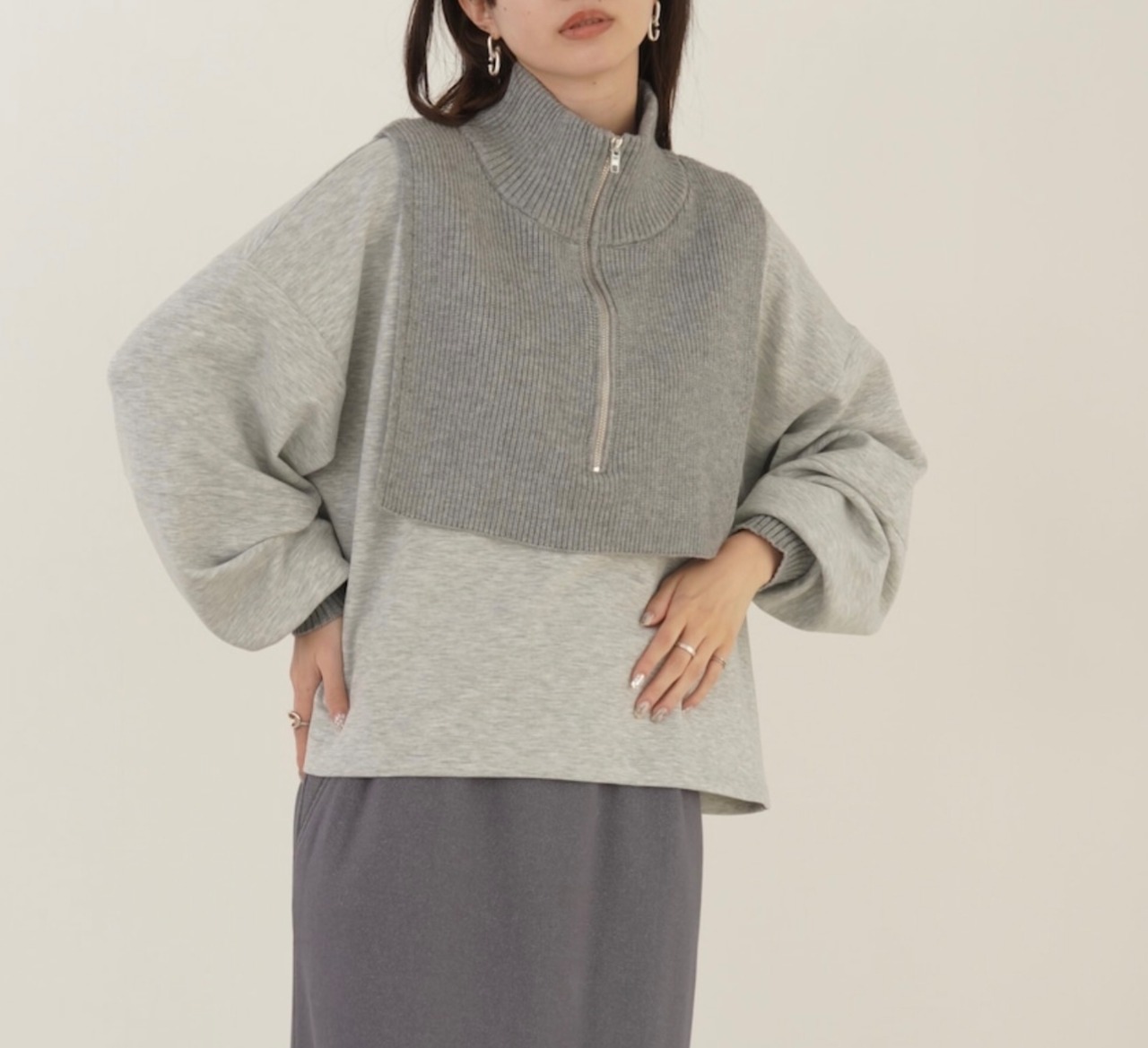 【SELECT/セレクト】ニットレイヤードハーフジップTOPS