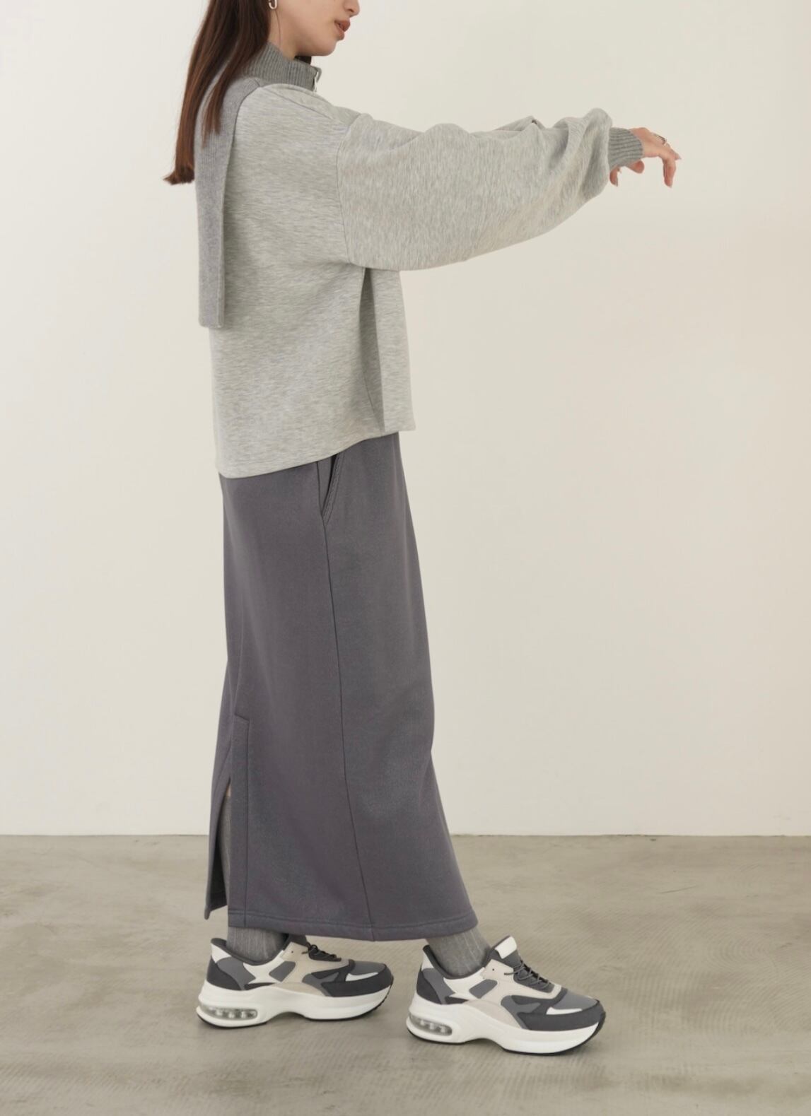 ワイドシルエットとパフスリーブが抜け感のあるスタイルを叶えてくれます。