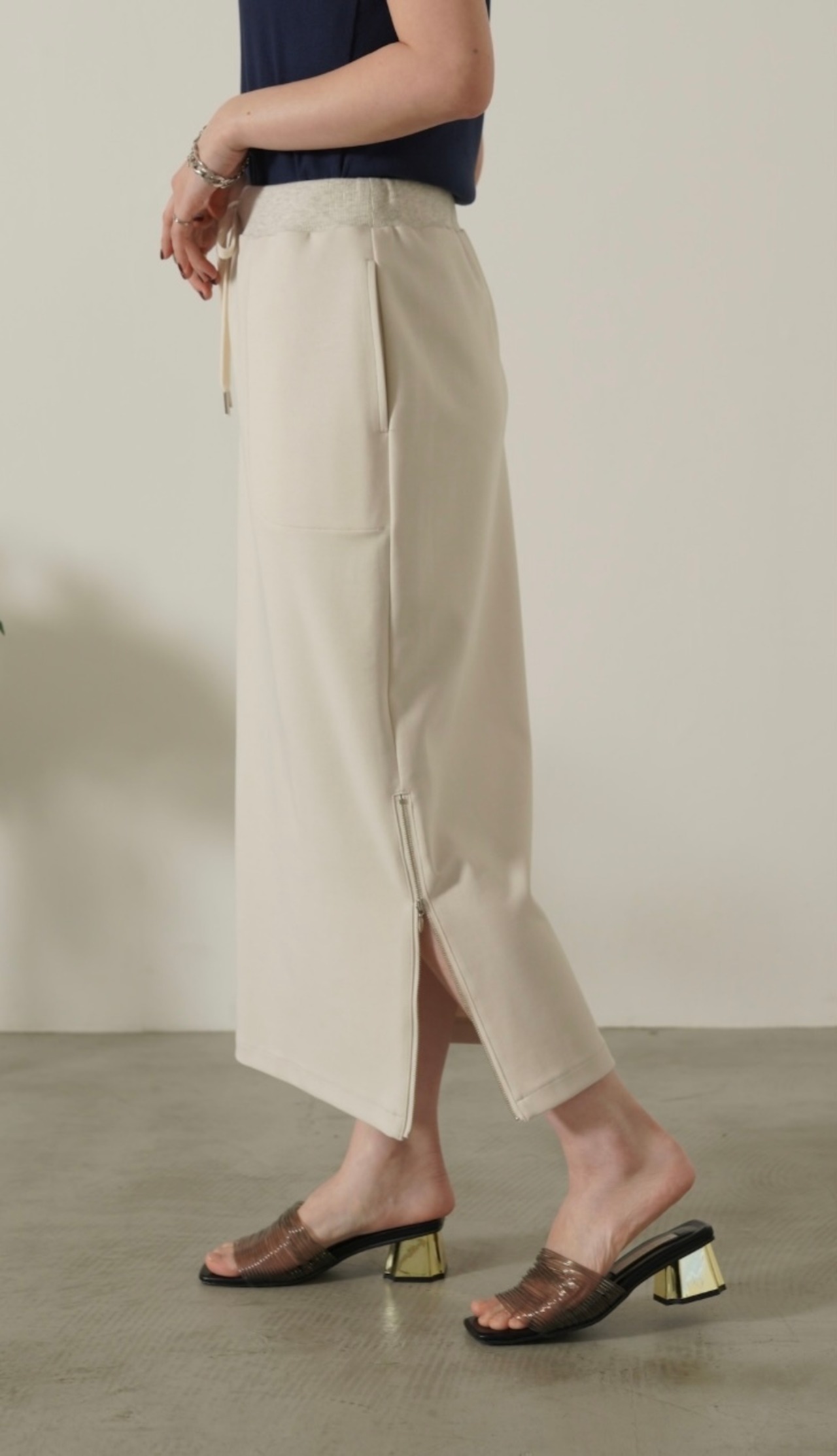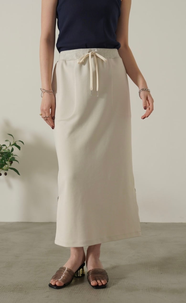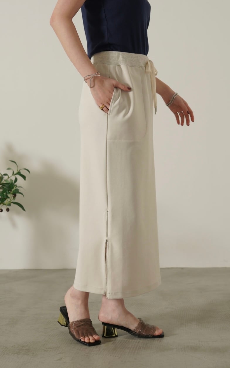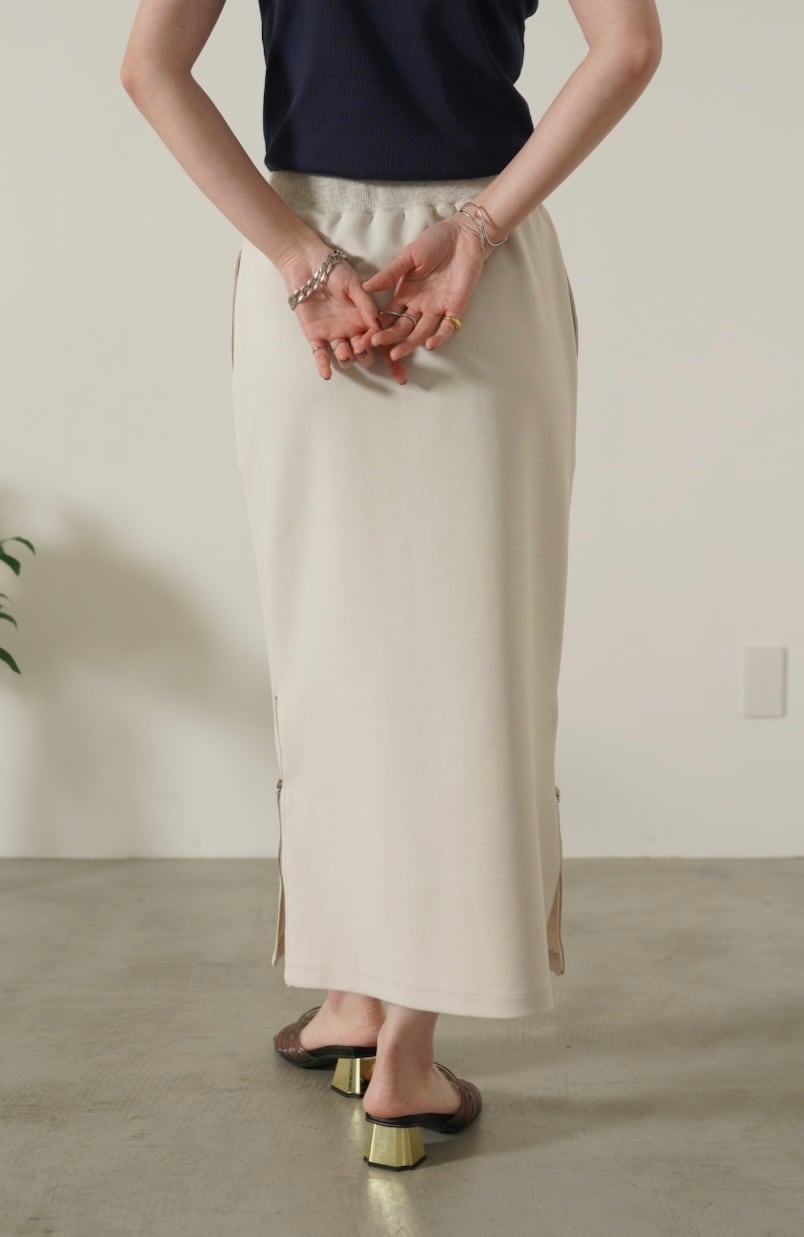 両サイドの裾ファスナーを開ければスリットになります。シーズンレスにデイリーに使える優秀スカートでオススメです。