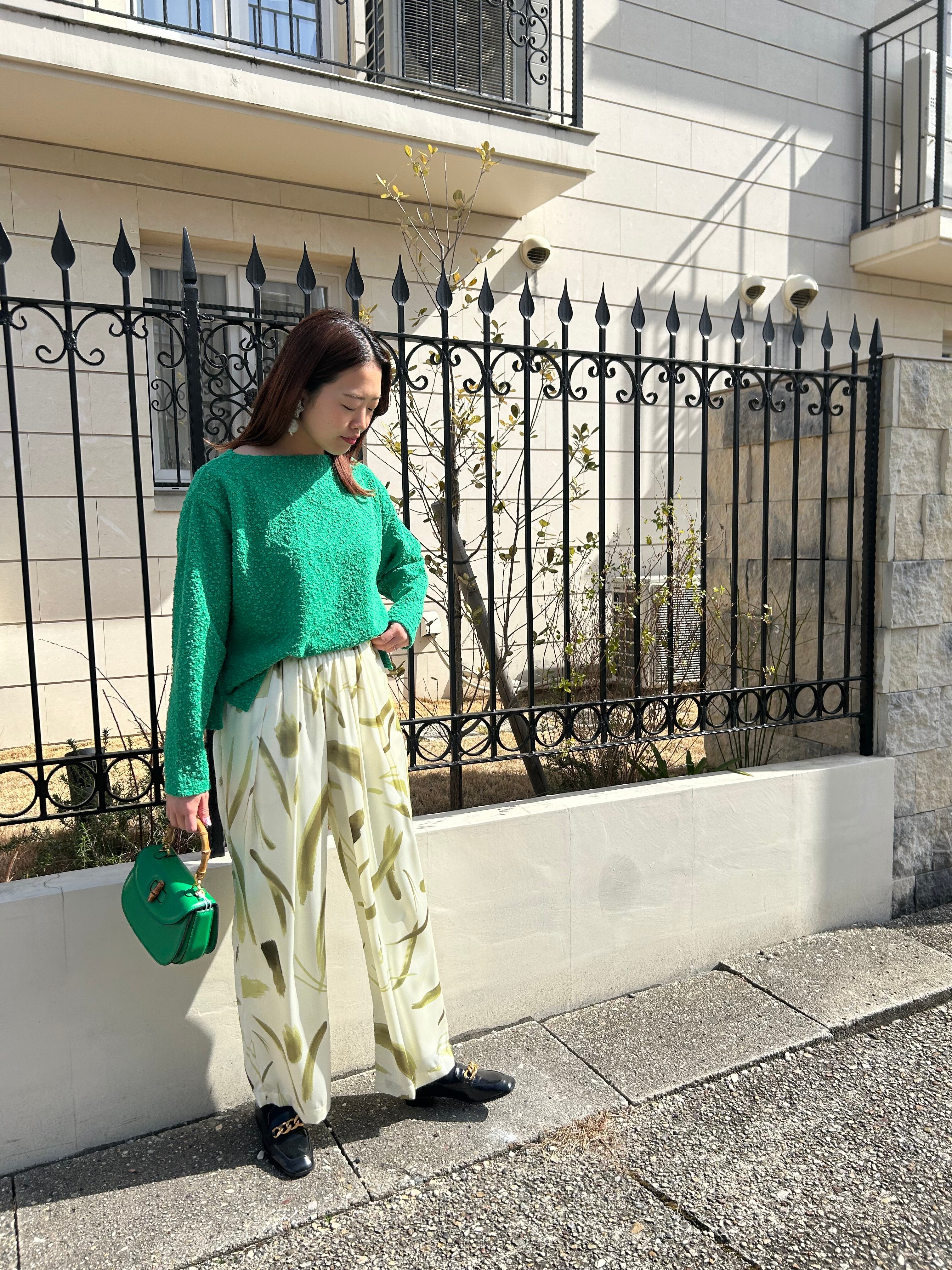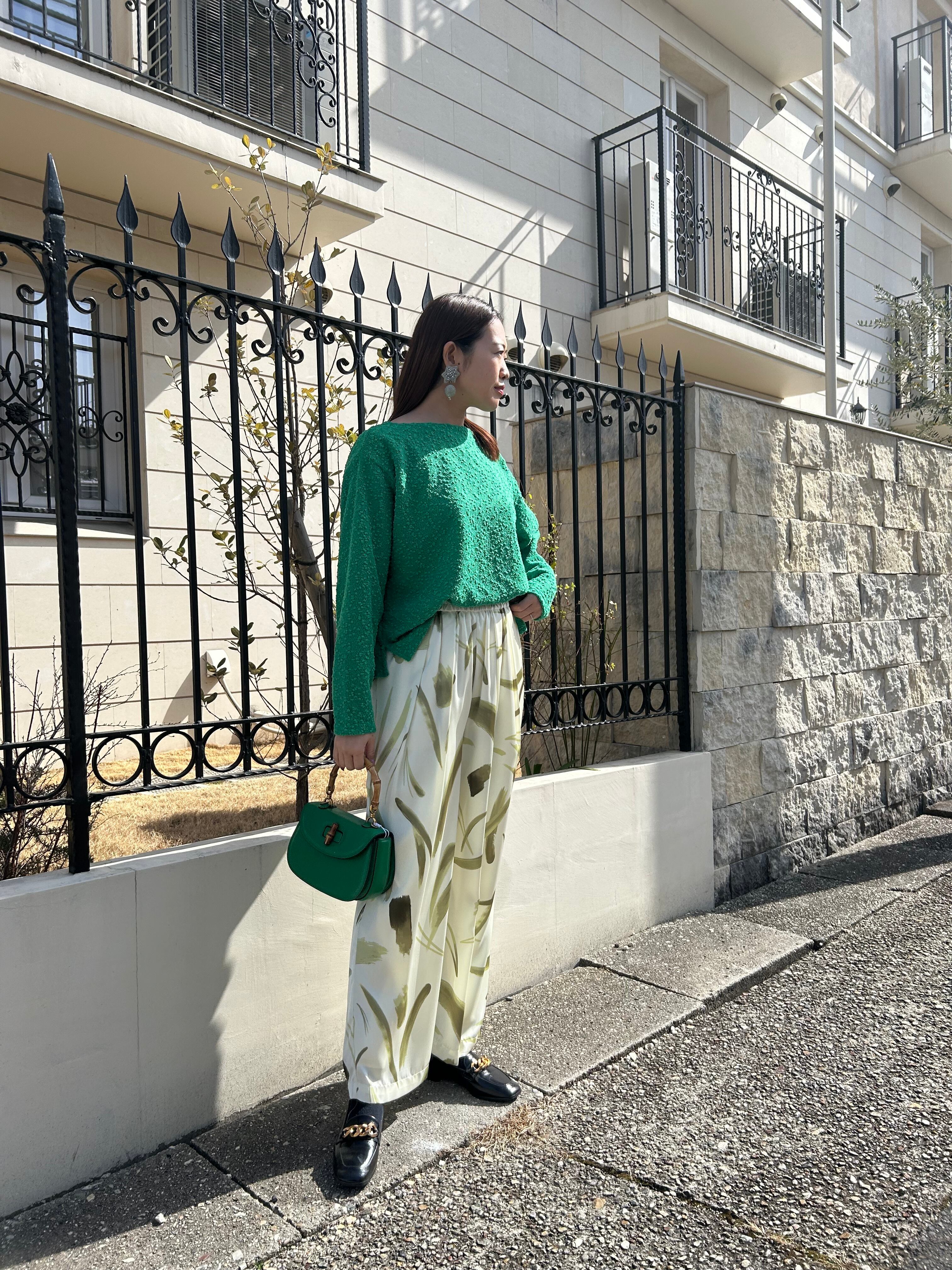 程よく光沢があり、落ち感のある素材なので、大人っぽく着こなしができます。