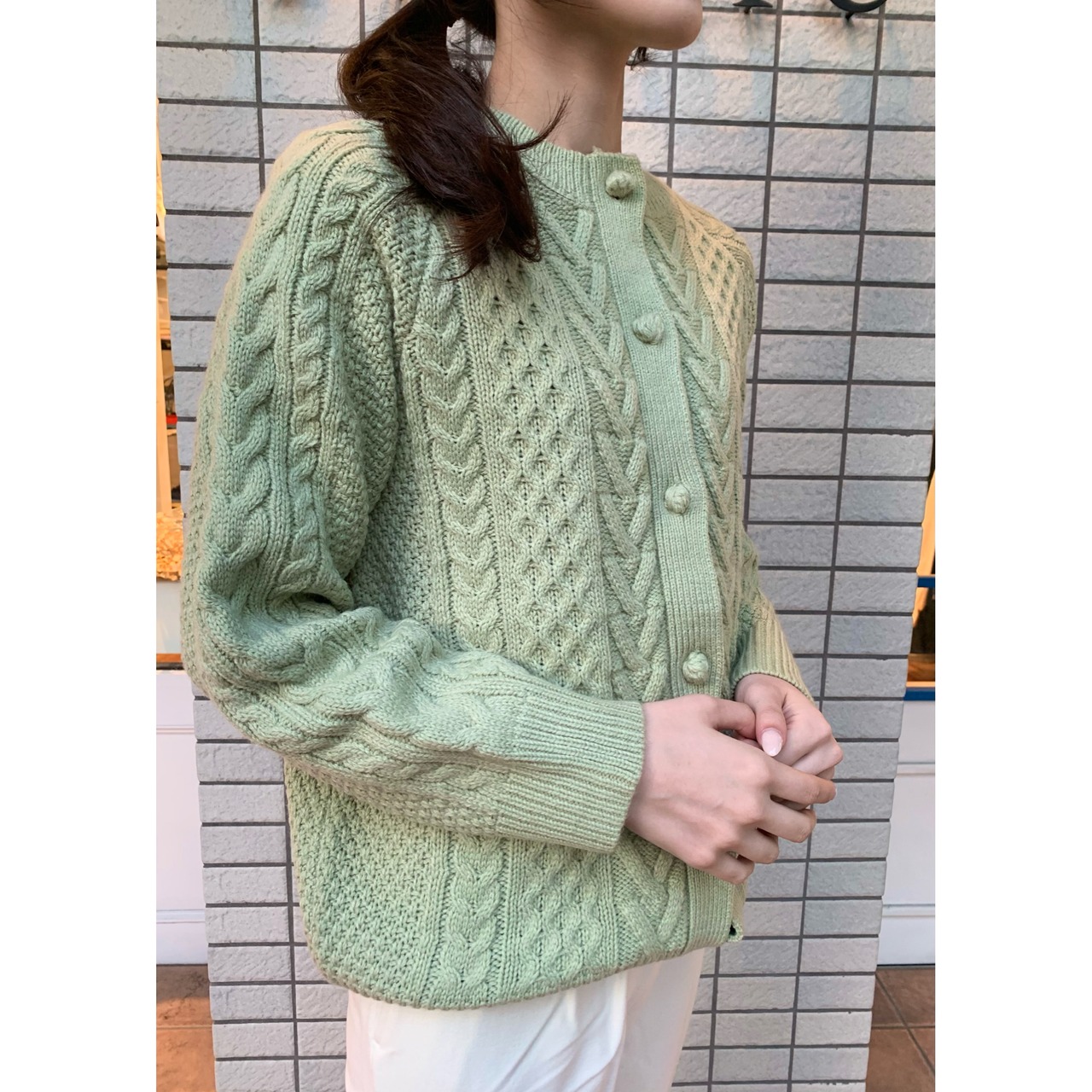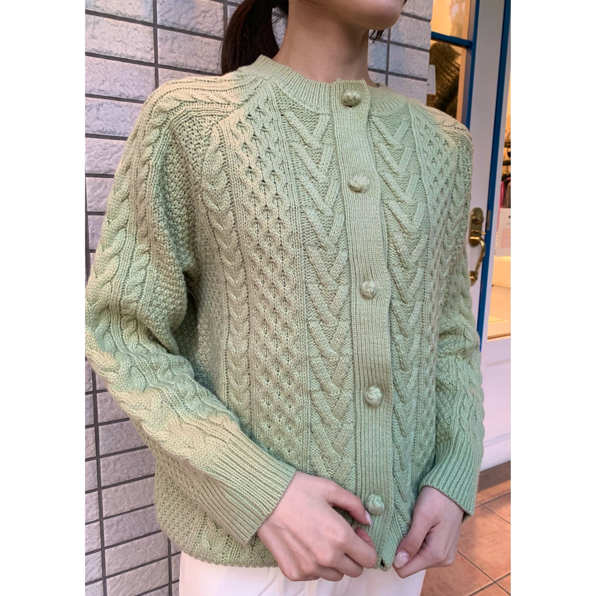 くすんだビタミンカラーがスタイリングを華やかにしてくれるケーブルカラー2wayニット。