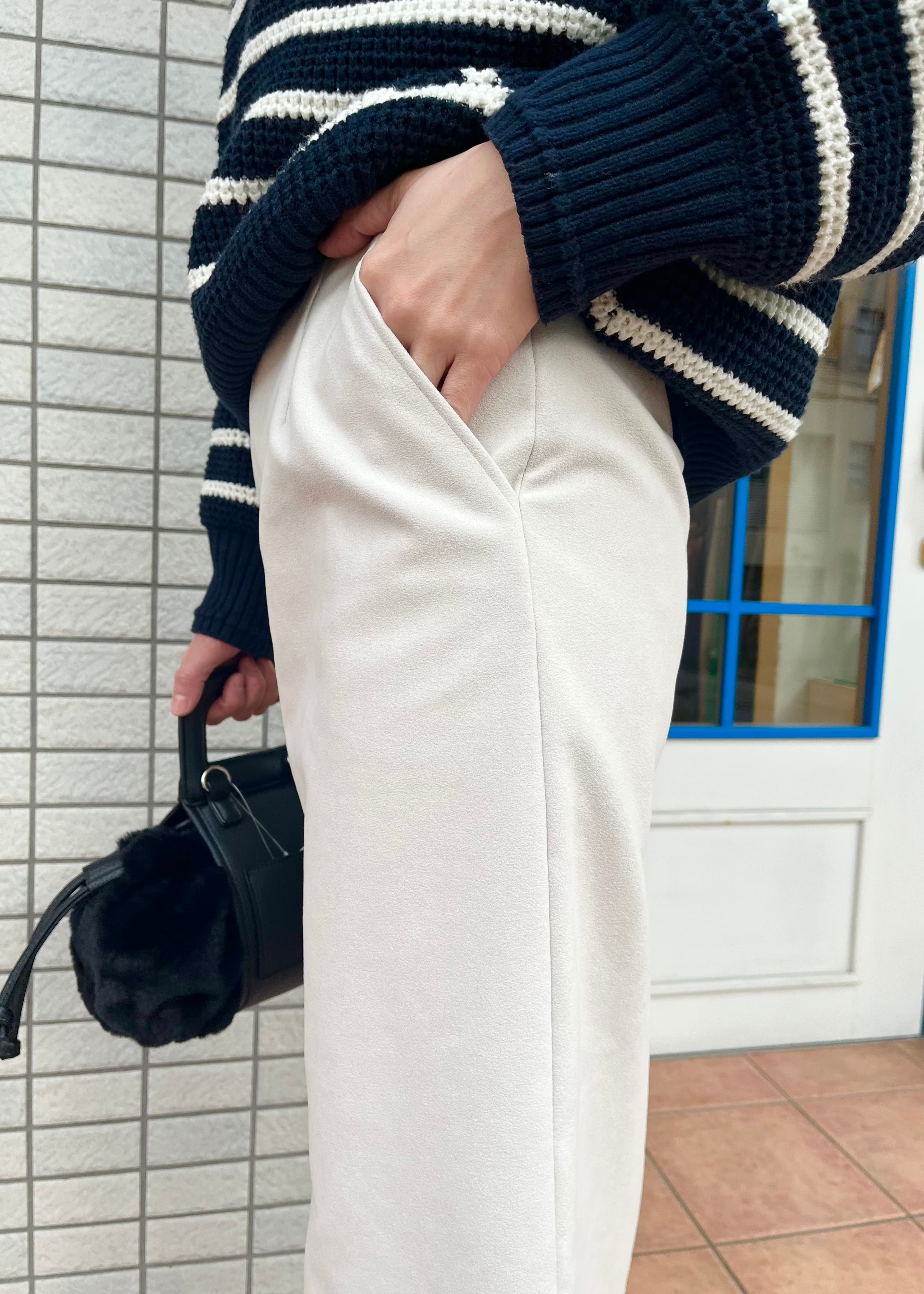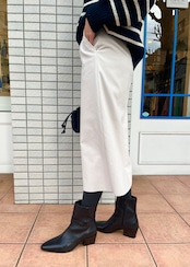 ウエストは両脇がゴムになっているので、トップスもインしやすく、すっきり見えます。