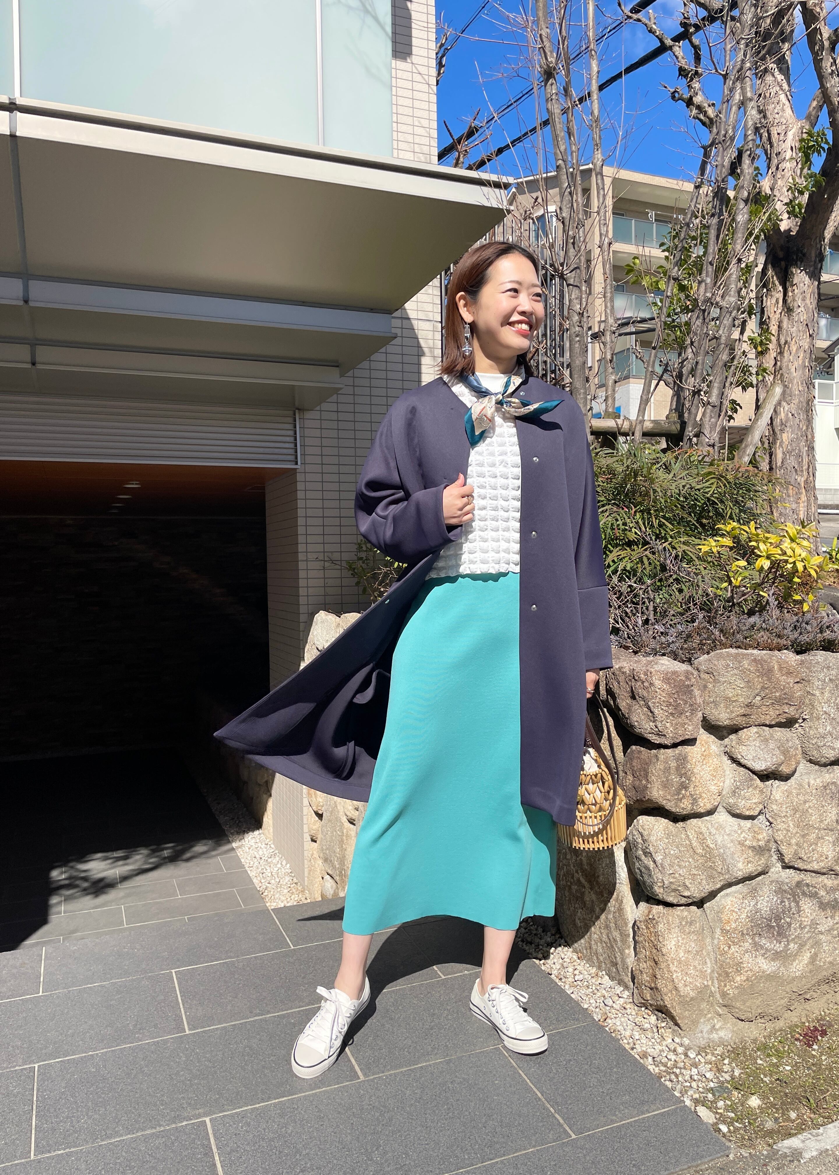 (着用モデル身長/アイボリー163cm、ネイビー165cm)