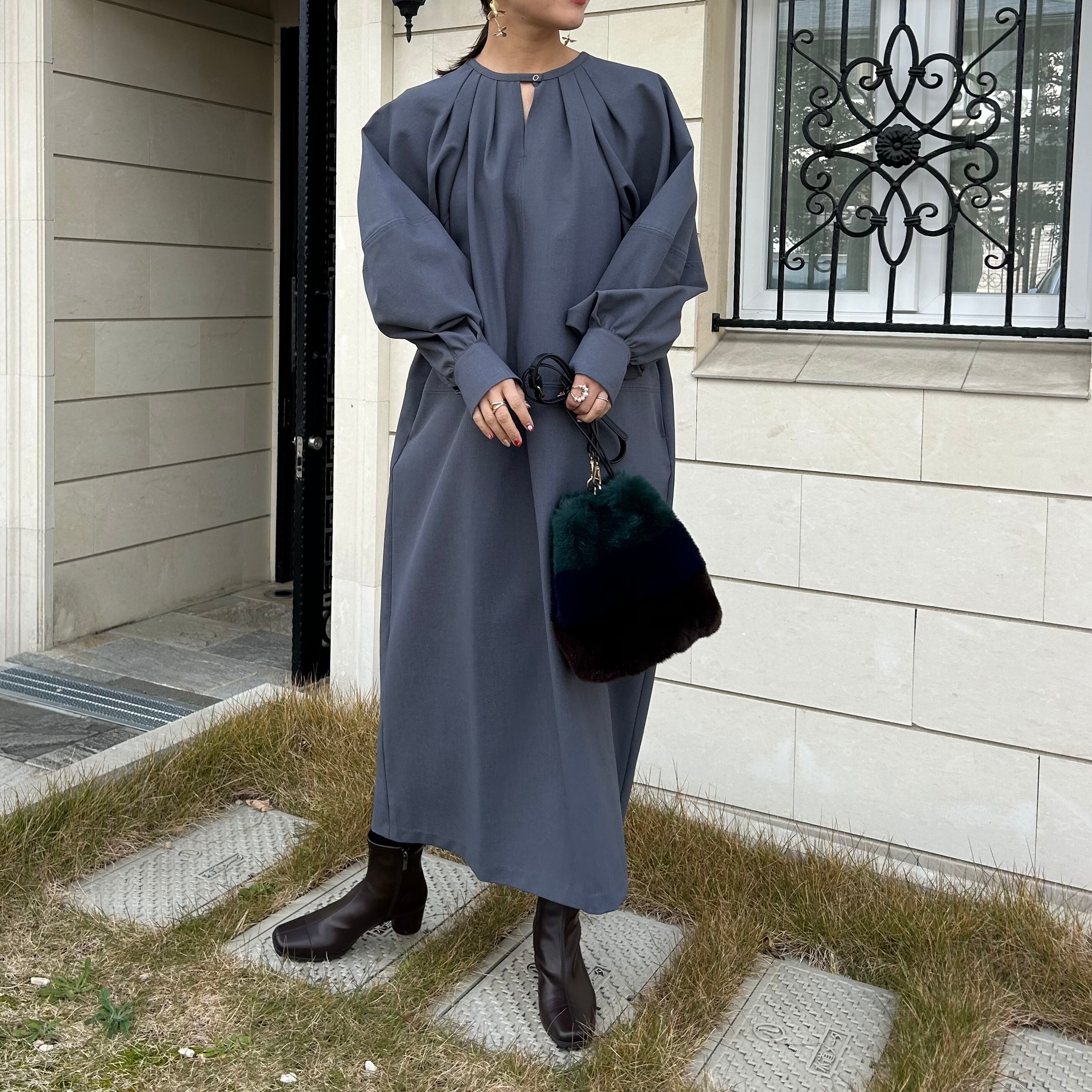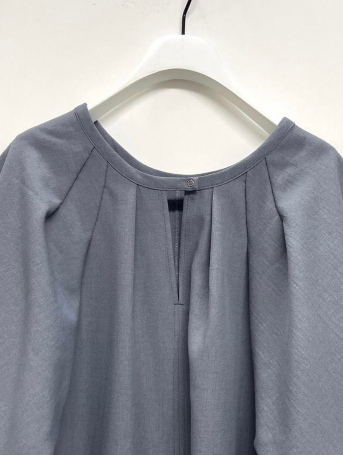 また、袖にはギャザーたっぷりのボリューム袖のディテールでクラシカルな印象に仕上がっています。