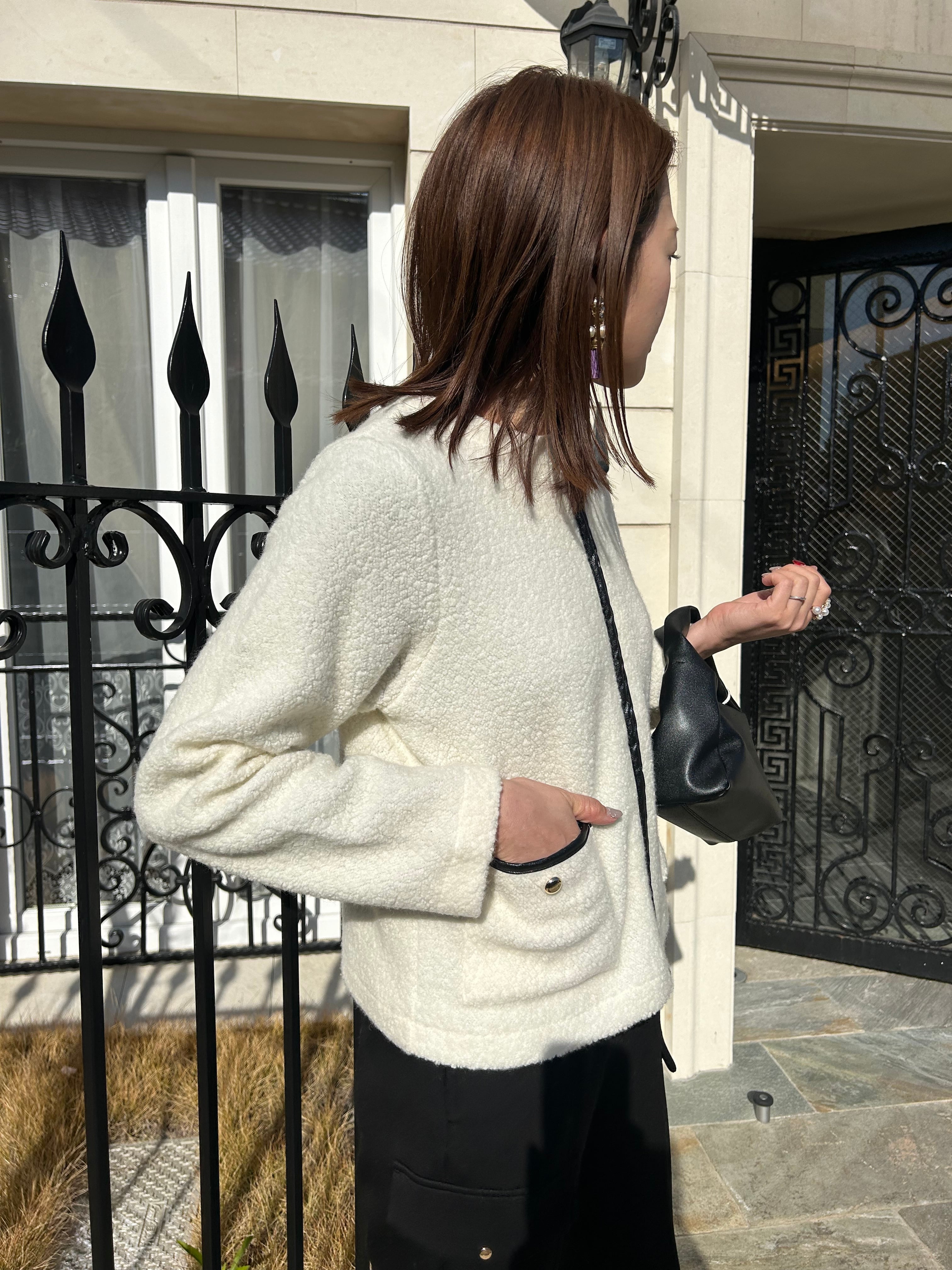 軽量で温かみのあるライトなボア素材を使用したアウターが登場。