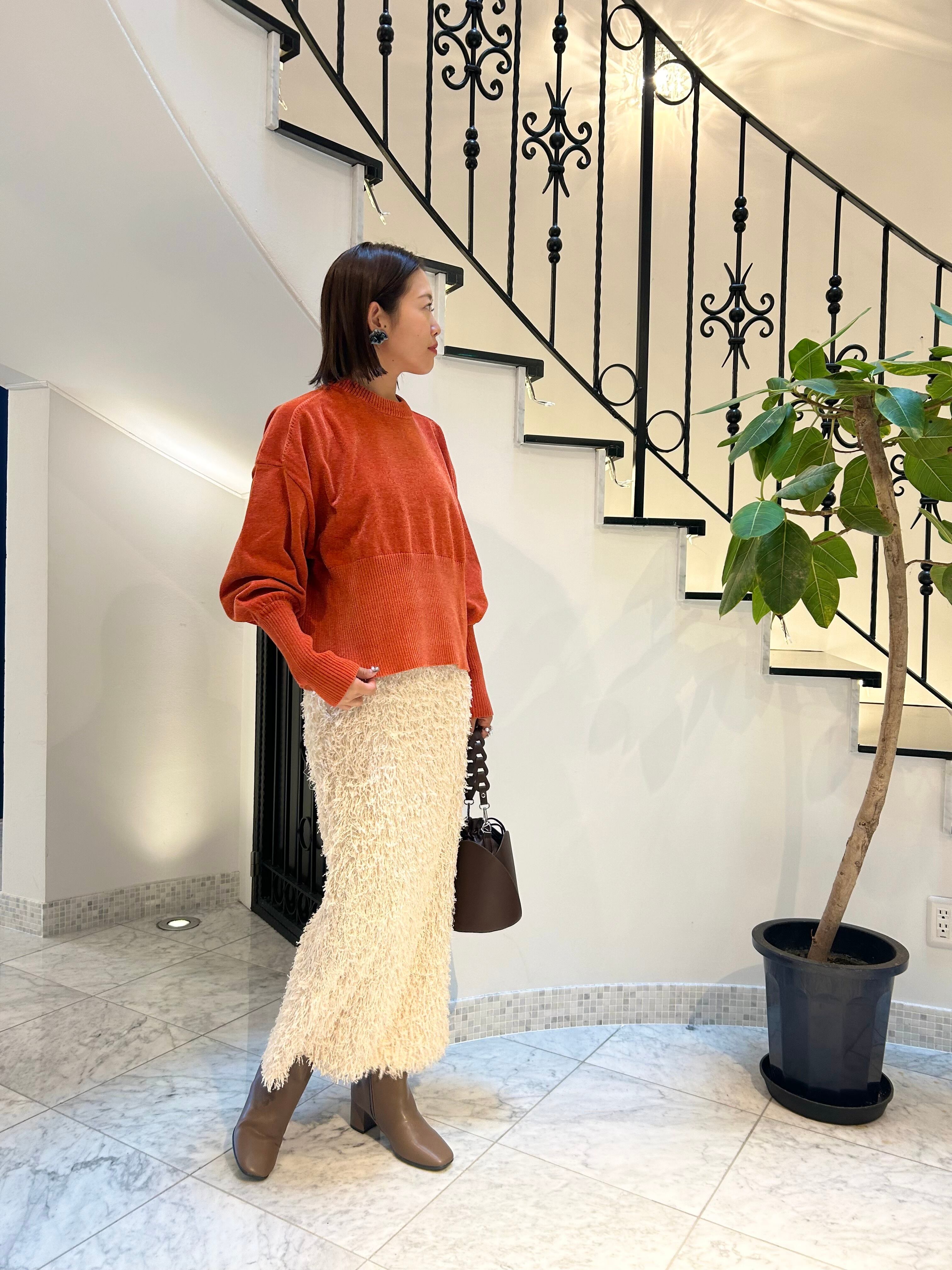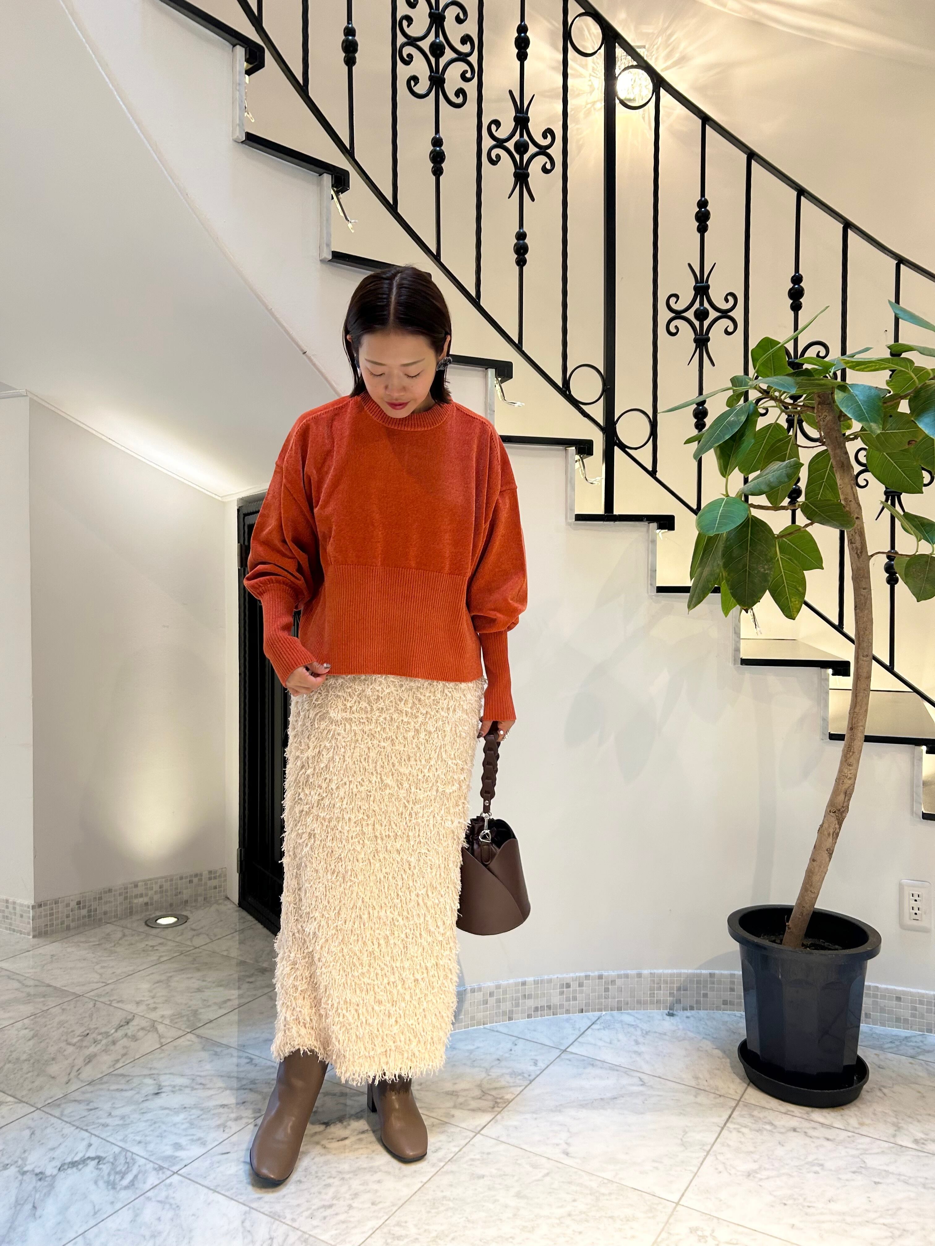モケモケとしたタッチが特徴のモール糸を使用したニットプルオーバーが登場。