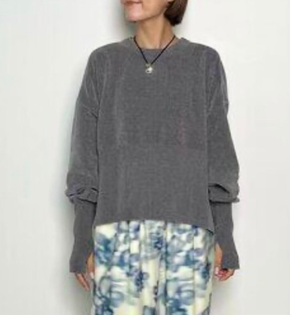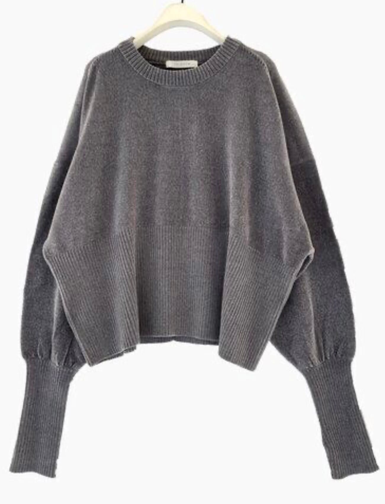 袖には程良いボリューム感を出し、短め丈と長めの裾リブでスッキリとしたシルエットになっています。